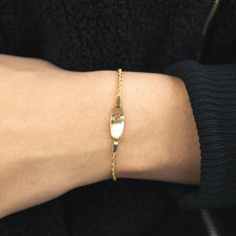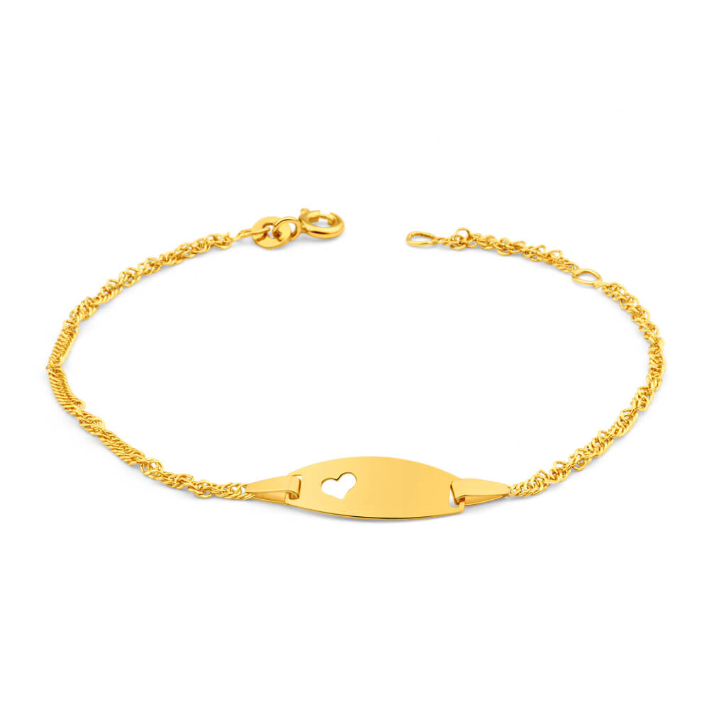 With a unique ID plate, this 9ct yellow gold Singapore links bracelet is the perfect sentinmental gift.