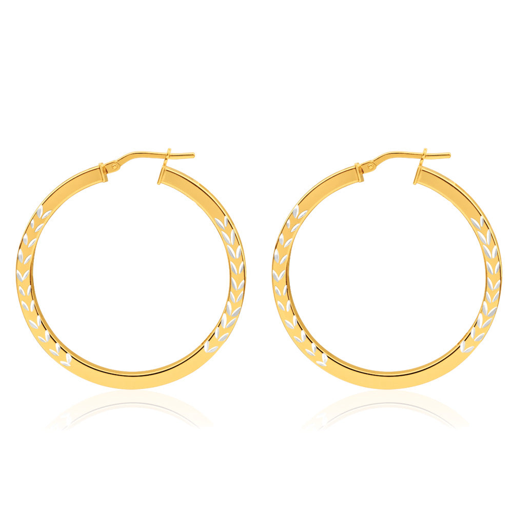 9ct Yellow Gold Silver Filled Square Two Tone Hoop Earrings in 30mm