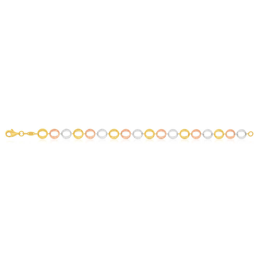 9ct Yellow Gold Silver Filled Three Tone Fancy 19cm Bracelet