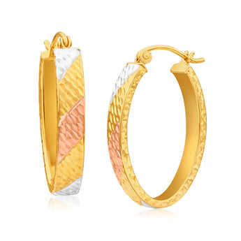 9ct Yellow Gold Silver Filled Three Tone Oval Hoop Earrings