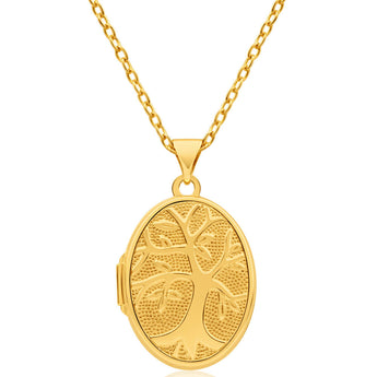 9ct Yellow Gold Silver Filled Tree of Life Oval Locket