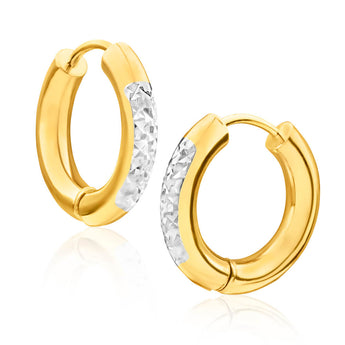 9ct Yellow Gold Silver Filled Two Tone Diamond Cut Hoop Earrings