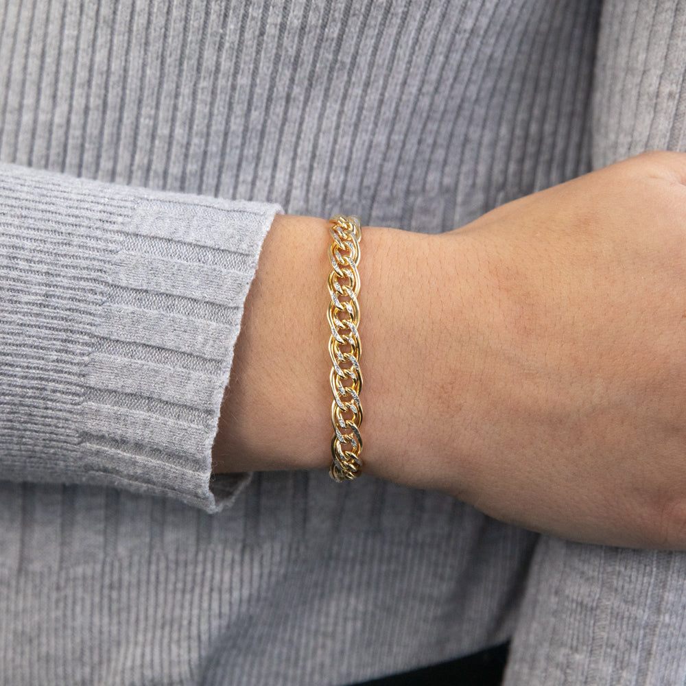 9ct Yellow Gold Silver Filled Two Tone Double 19cm Curb Bracelet