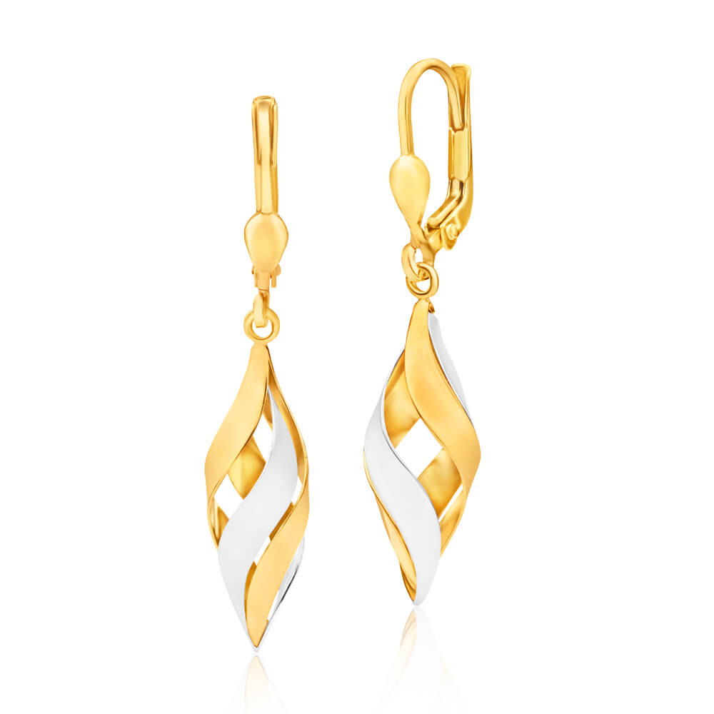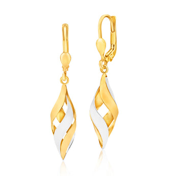 9ct Yellow Gold Silver Filled Two Tone Finish Twist Cage Drop Earrings