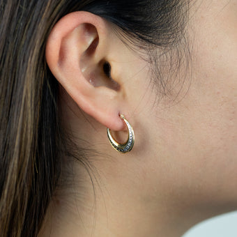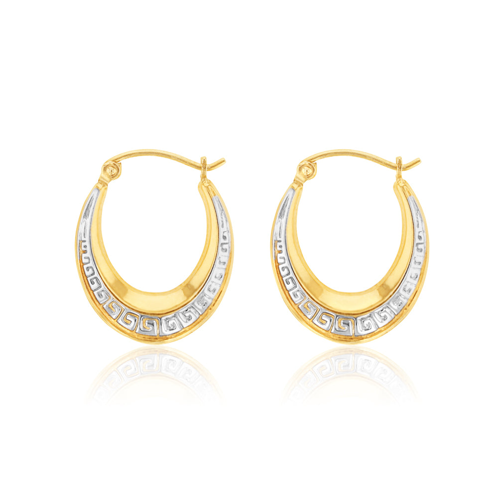 9ct Yellow Gold Silver Filled Two Tone Oval Hoop Earrings