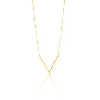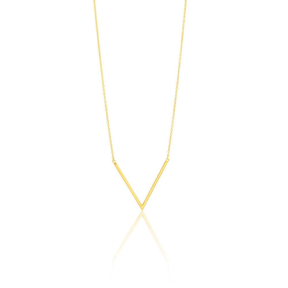 9ct Yellow Gold Silver Filled V Pendant With 45cm Chain