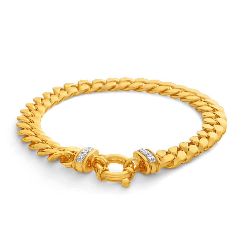 9ct Yellow Gold Silver Filled Zirconia Curb Bracelet