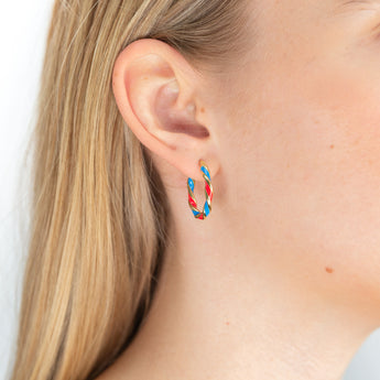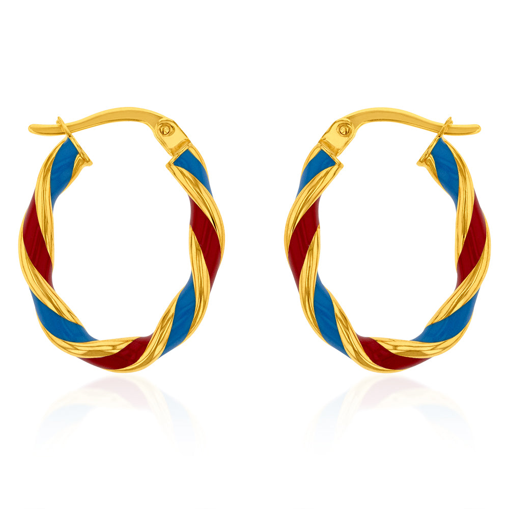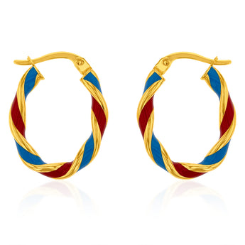 9ct Yellow Gold Silverfilled 15mm Red And Blue Enamel On Twisted Hoop Earrings