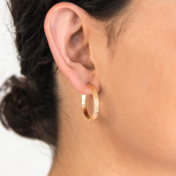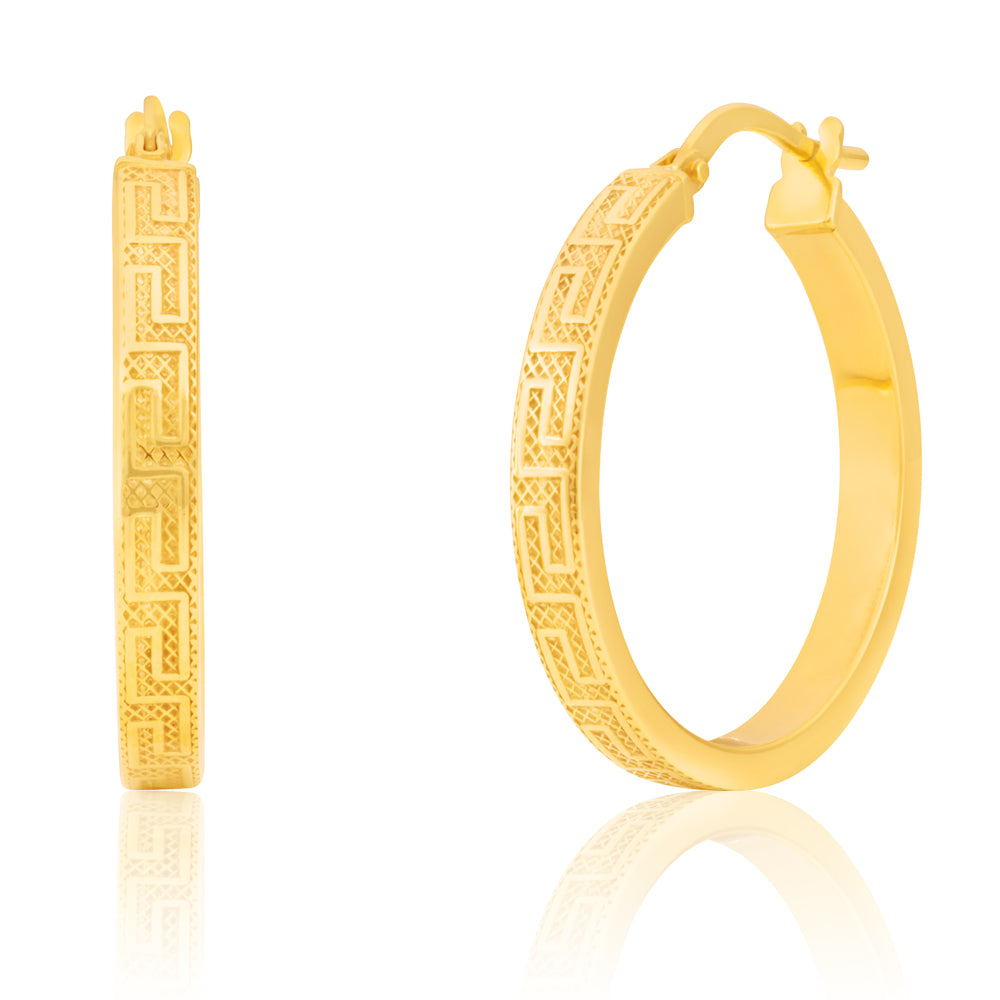 9ct Yellow Gold SilverFilled 20mm Hoop Earrings with Greek Key of Life Design