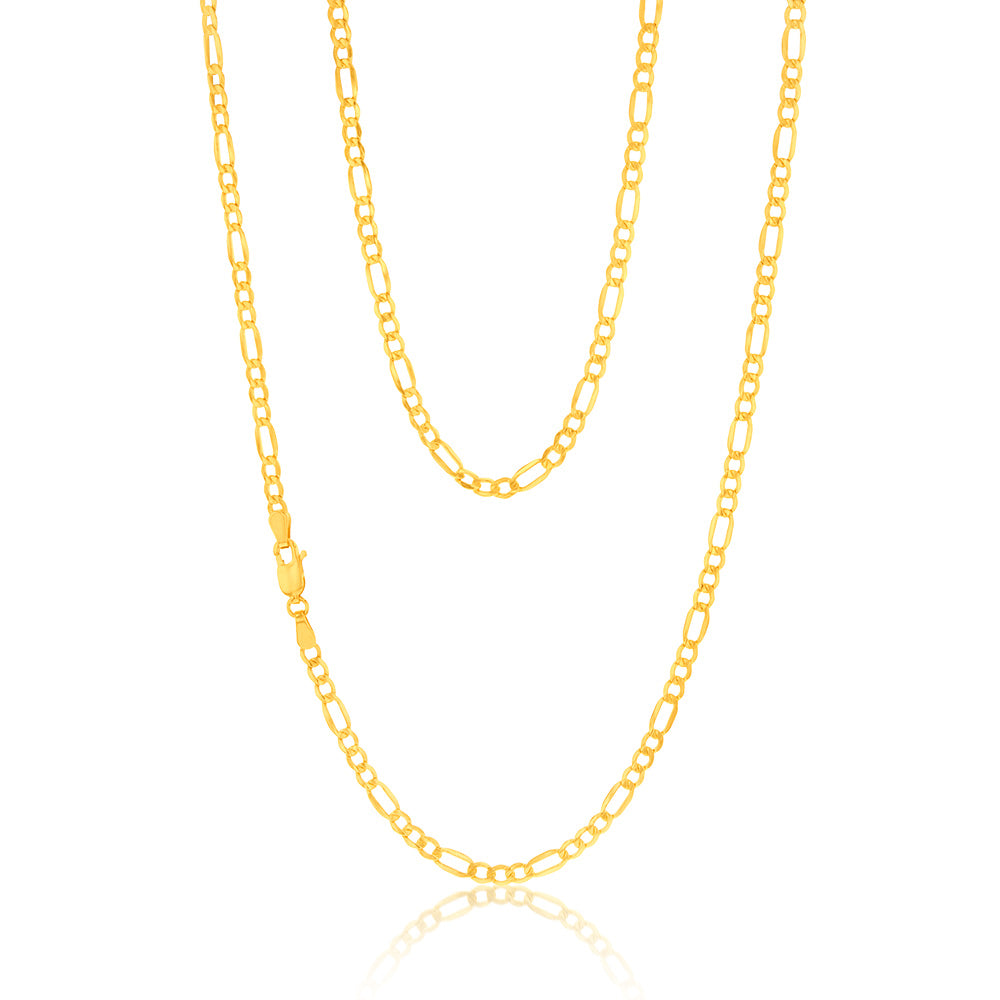 9ct Yellow Gold Silverfilled Bevelled 1:3 Figaro 80 Gauge 55cm Chain