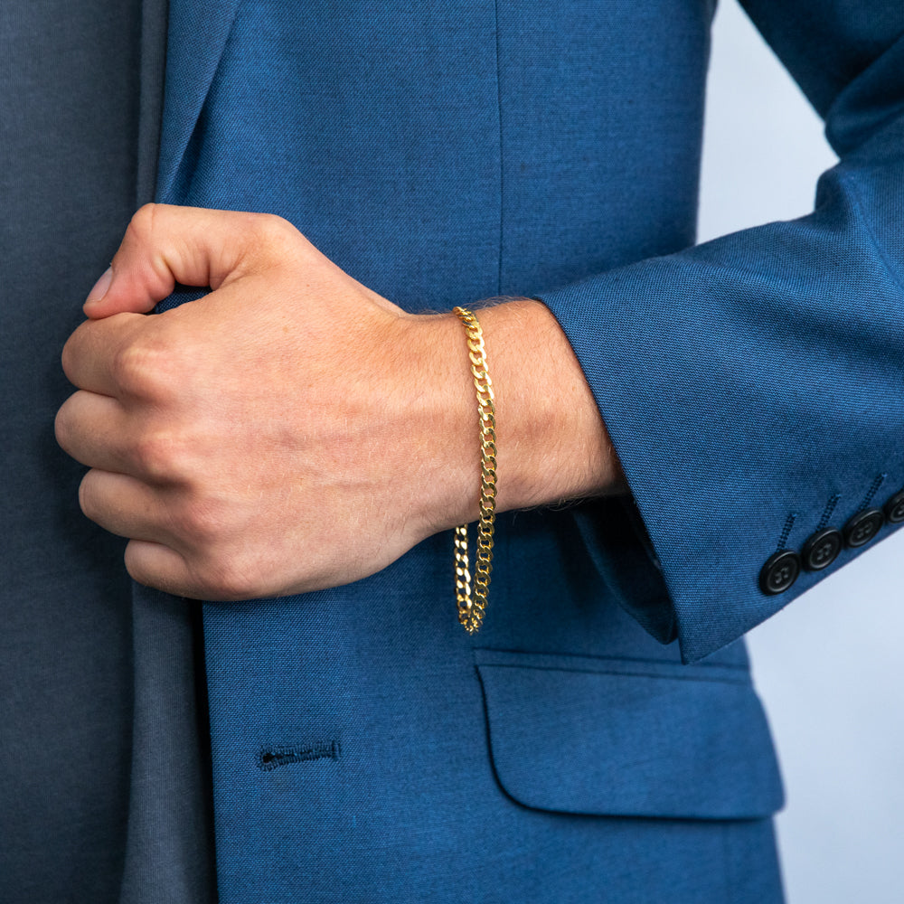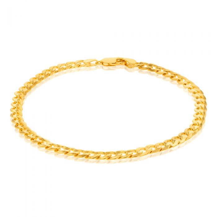 9ct Yellow Gold Silverfilled Bevelled Curb 120 Gauge 23cm Bracelet