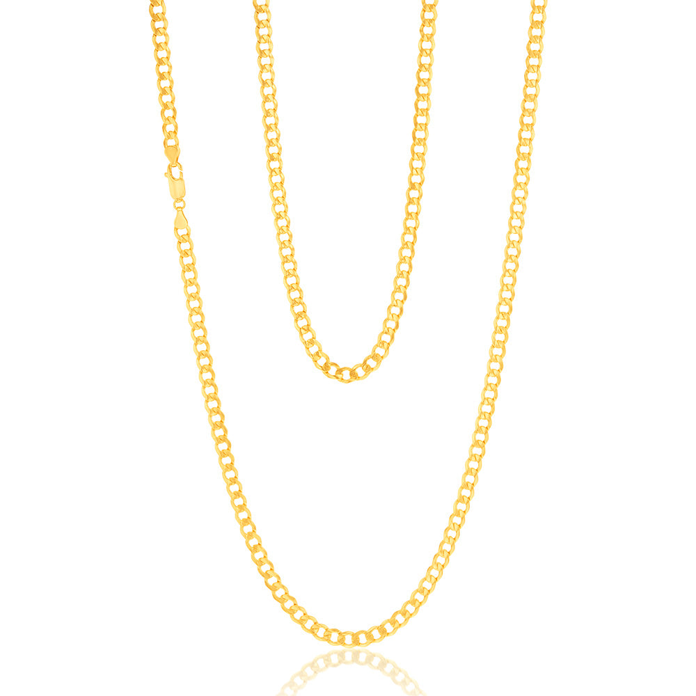 9ct Yellow Gold Silverfilled Bevelled Curb 120 Gauge 80cm Chain