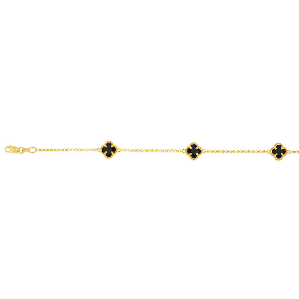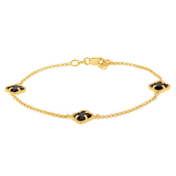 9ct Yellow Gold Silverfilled Black Flower 19cm Bracelet
