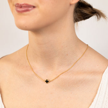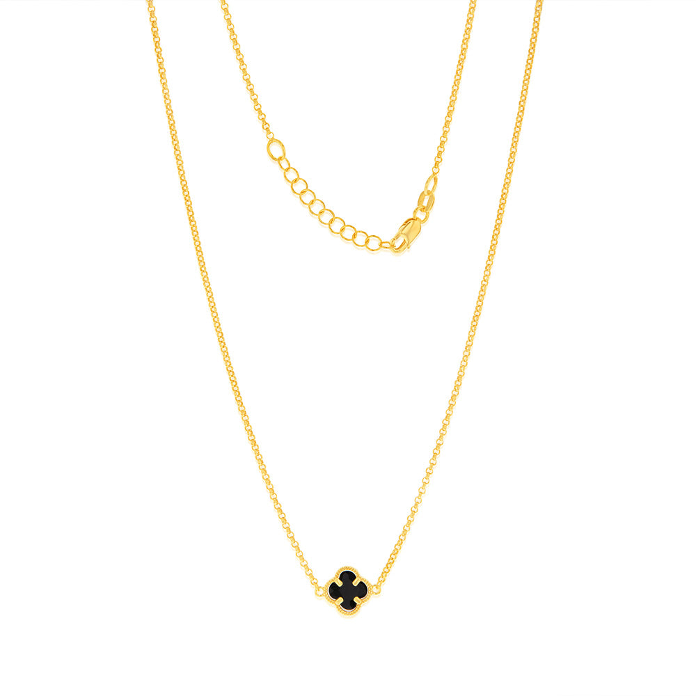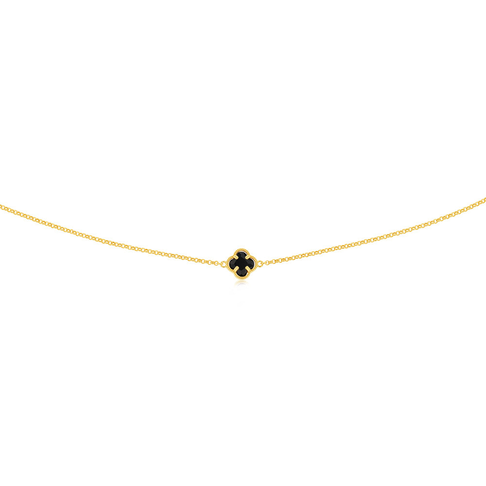 9ct Yellow Gold Silverfilled Black Flower 45cm Chain