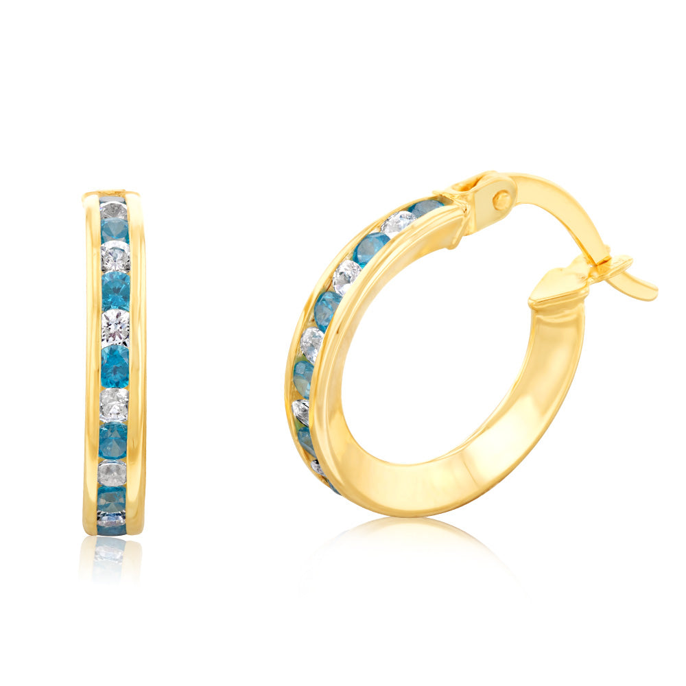 9ct Yellow Gold Silverfilled Blue Cubic Zirconia 10mm Hoop Earrings