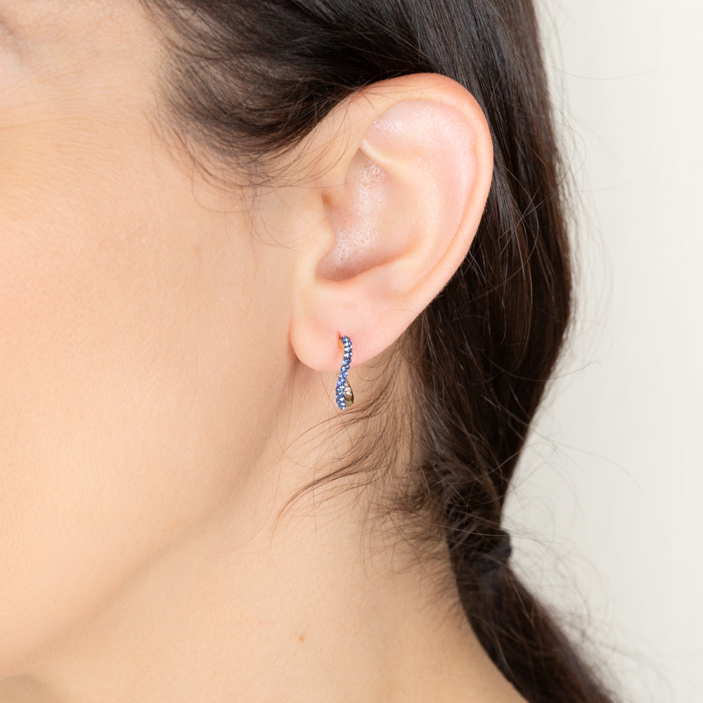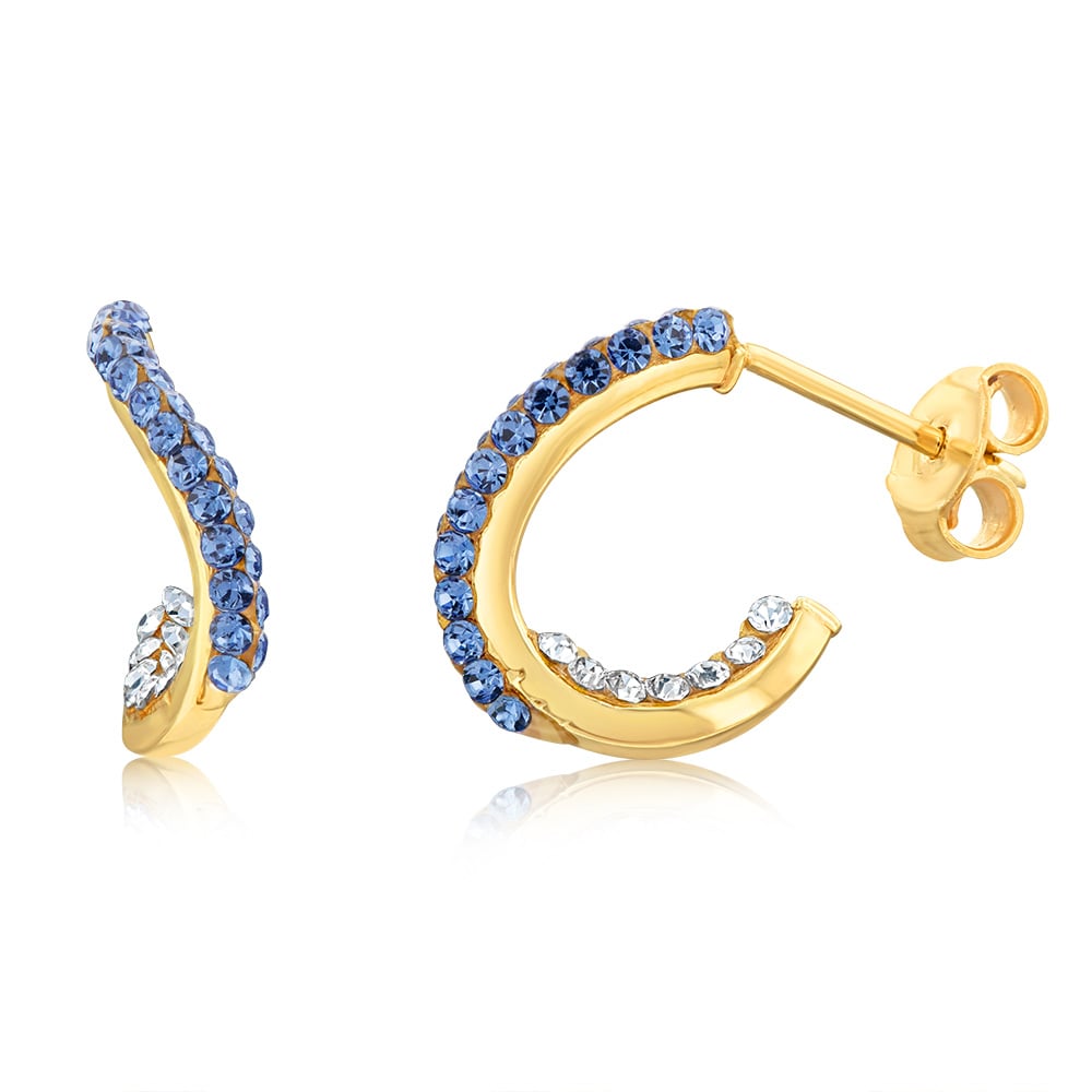 9ct Yellow Gold Silverfilled Blue White Crystal Half Hoop Earrings