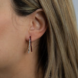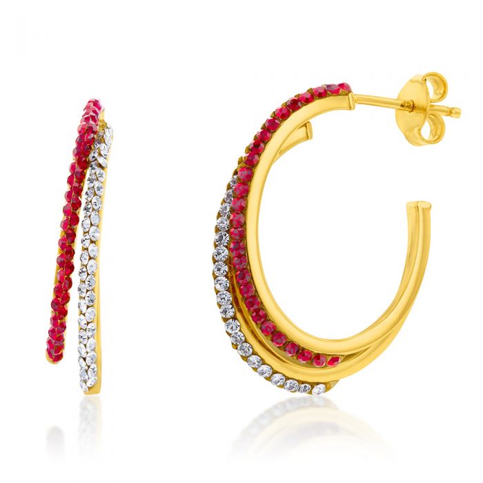 9ct Yellow Gold Silverfilled Crystal And Red Double Half Hoop Earrings