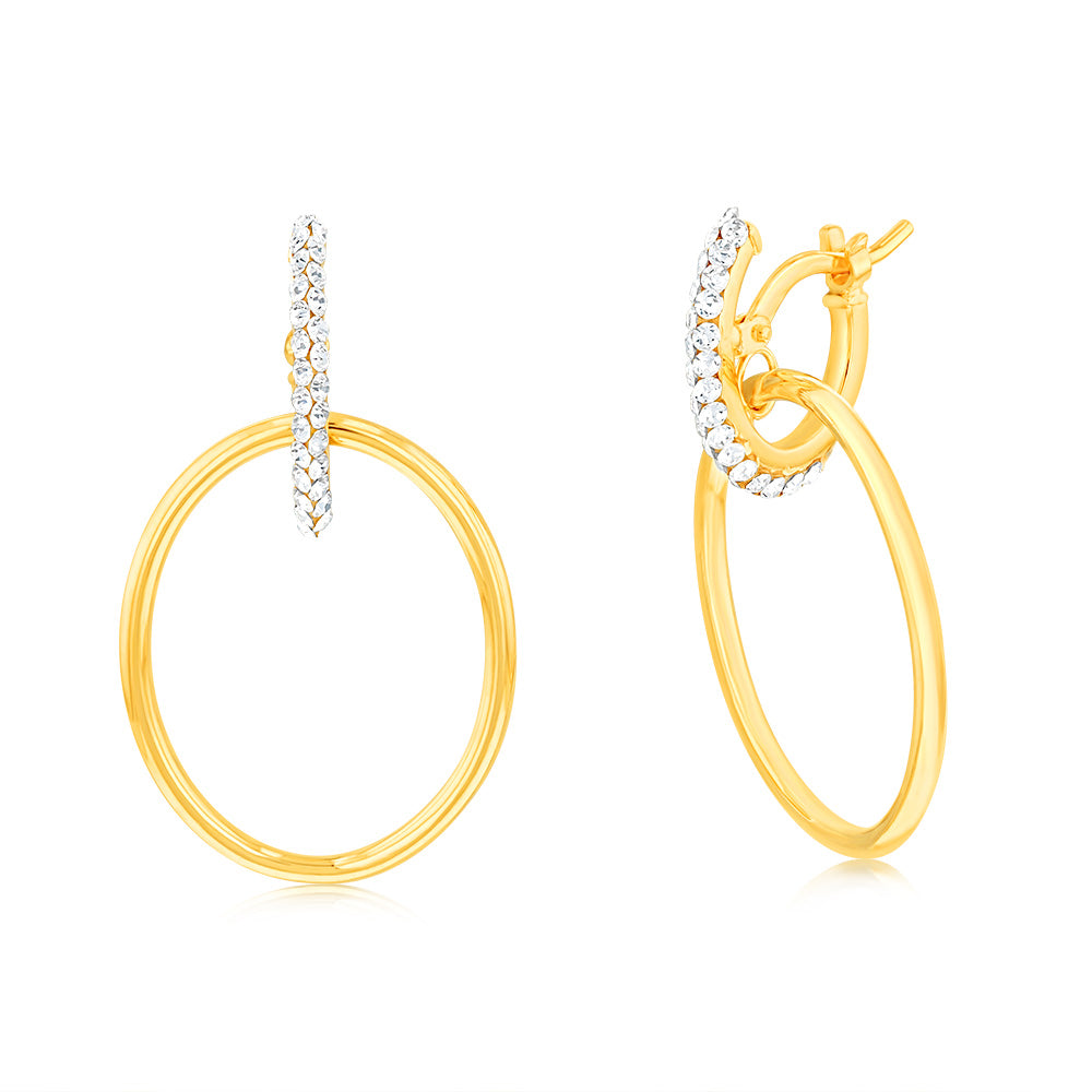 9ct Yellow Gold Silverfilled Crystal Circle Drop Earrings
