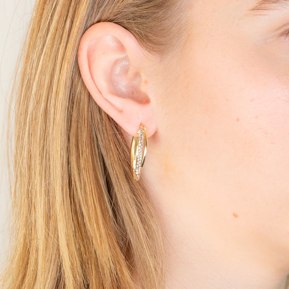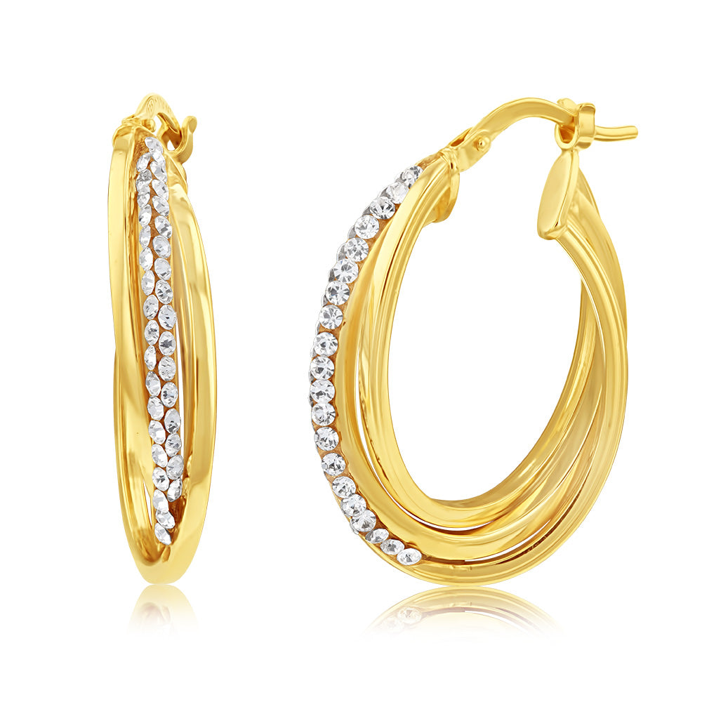 9ct Yellow Gold Silverfilled Crystal Hoop Earrings