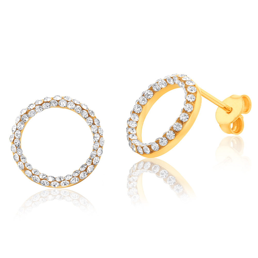 9ct Yellow Gold Silverfilled Crystal Open Circle Earrings
