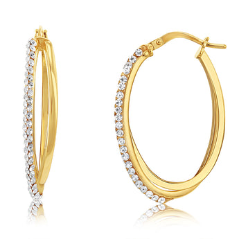 9ct Yellow Gold Silverfilled Crystal Twin Hoop Earrings