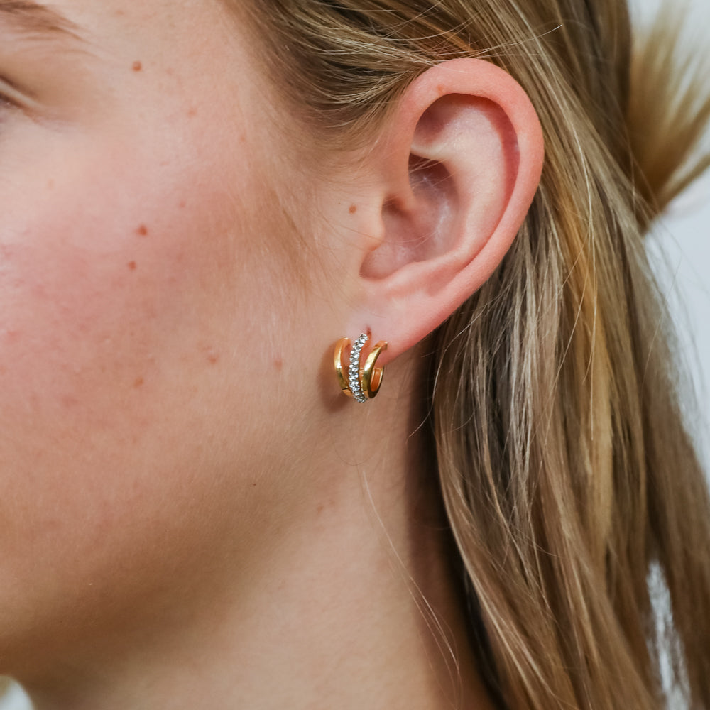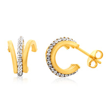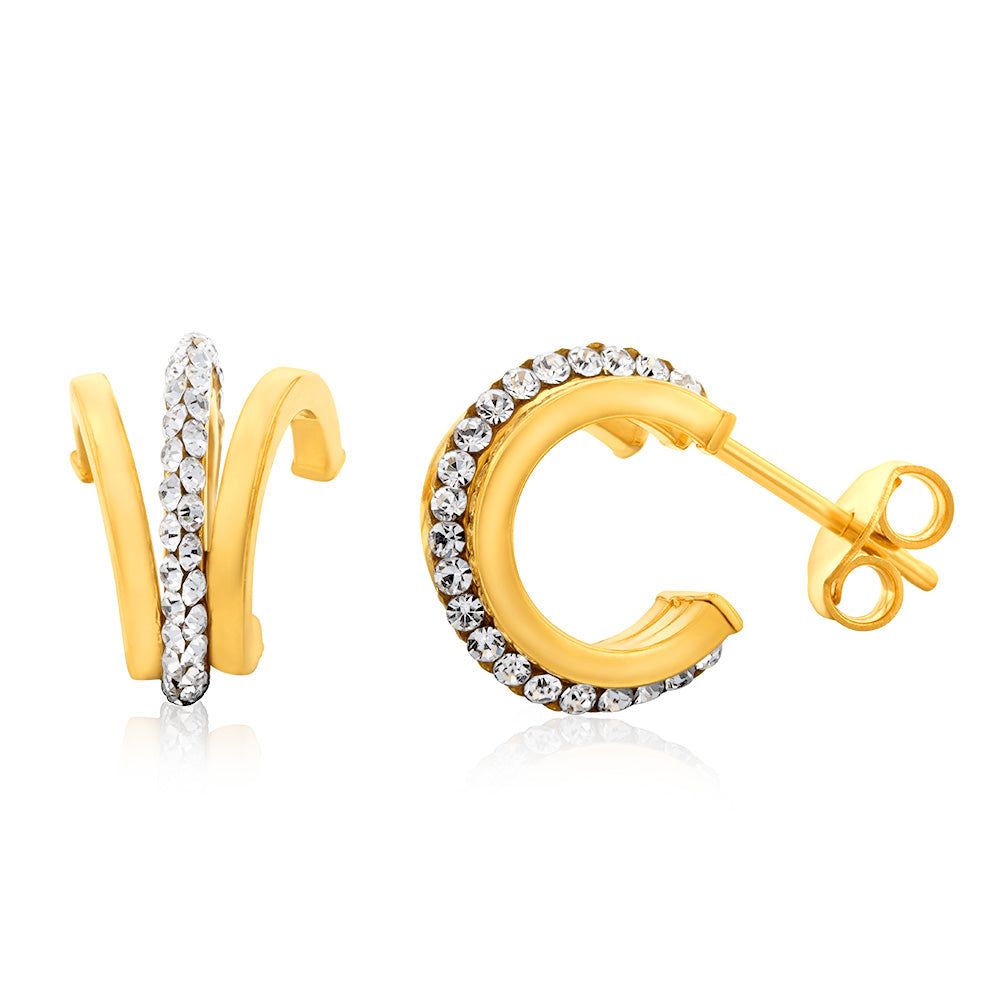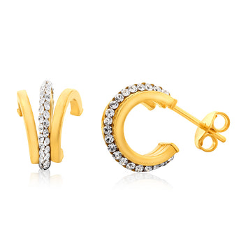 9ct Yellow Gold Silverfilled Crystals On Small Half Hoop Earrings