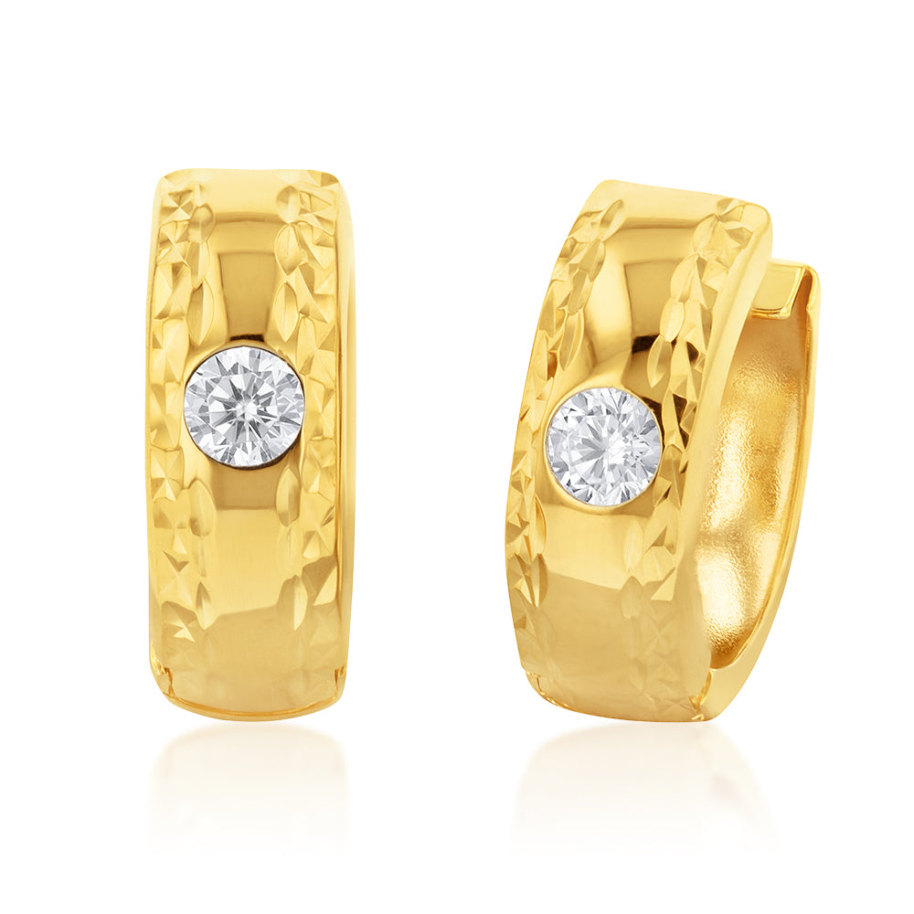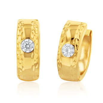 9ct Yellow Gold Silverfilled Cubic Zirconia 10mm Hoop Earrings