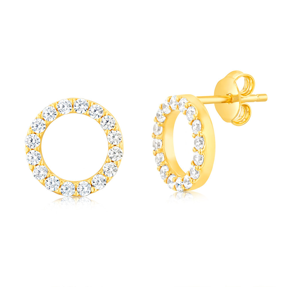 9ct Yellow Gold Silverfilled Cubic Zirconia Circle Of Life Stud Earrings