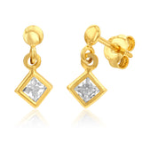 9ct Yellow Gold Silverfilled Cubic Zirconia Diamond Shaped Drop Earrings