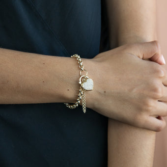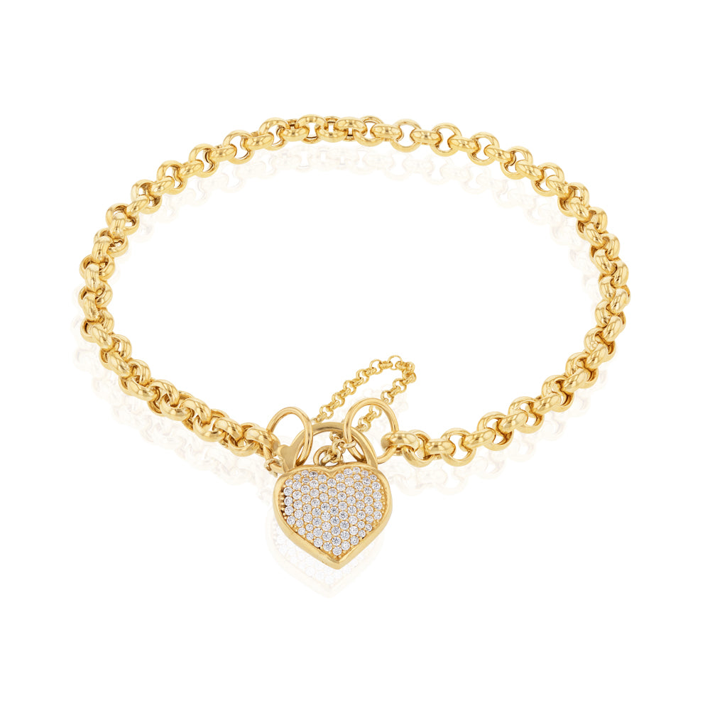 9ct Yellow Gold Silverfilled Cubic Zirconia Heart 22.9cm Bracelet