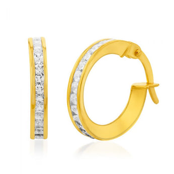 9ct Yellow Gold Silverfilled Cubic Zirconia On 10mm Hoop Earring