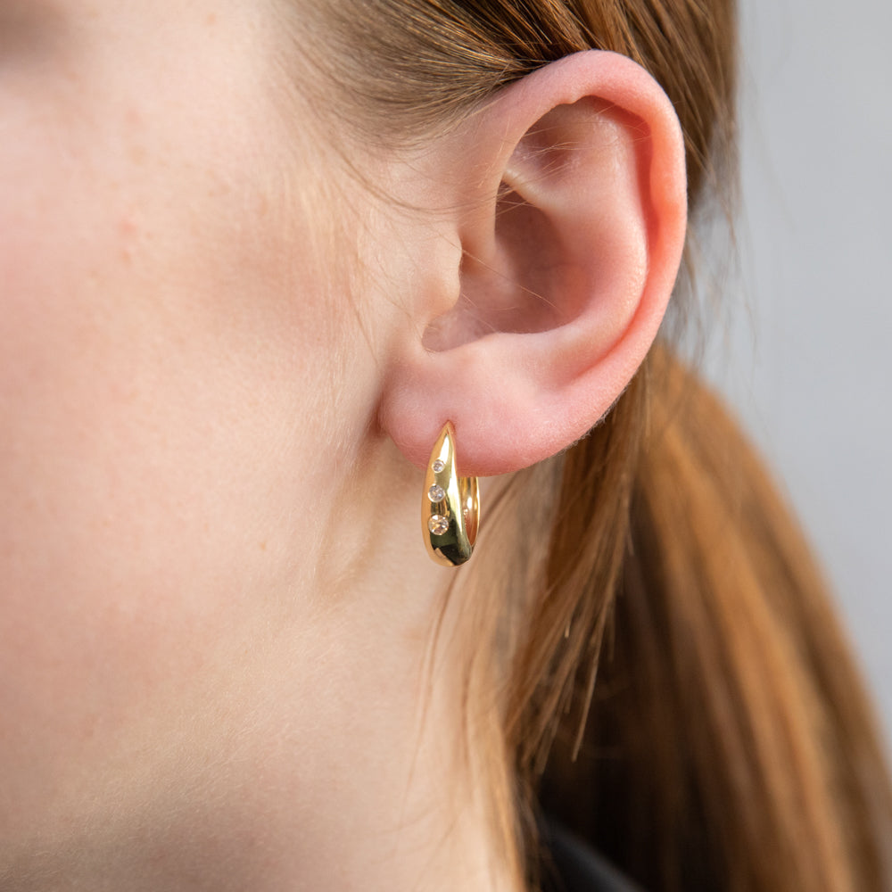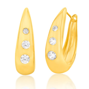9ct Yellow Gold Silverfilled CZ On Hinged Hoop Earrings