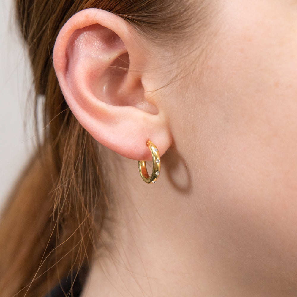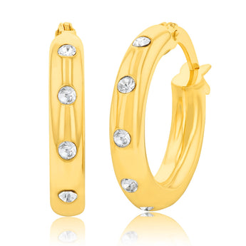 9ct Yellow Gold Silverfilled CZ On Hoop Earrings