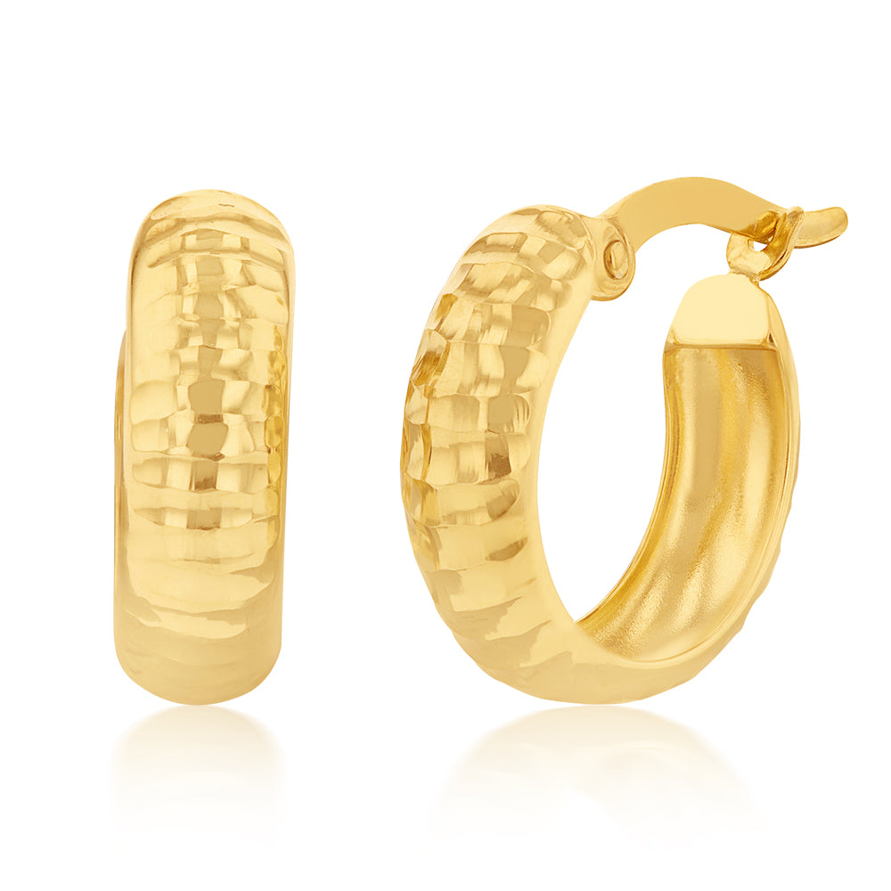 9ct Yellow Gold Silverfilled Diamond Cut 10mm Hoop Earrings