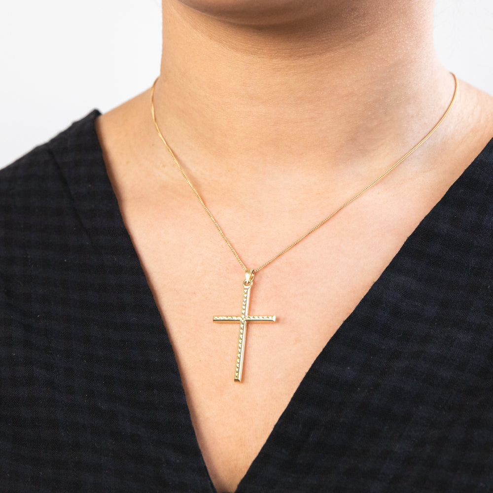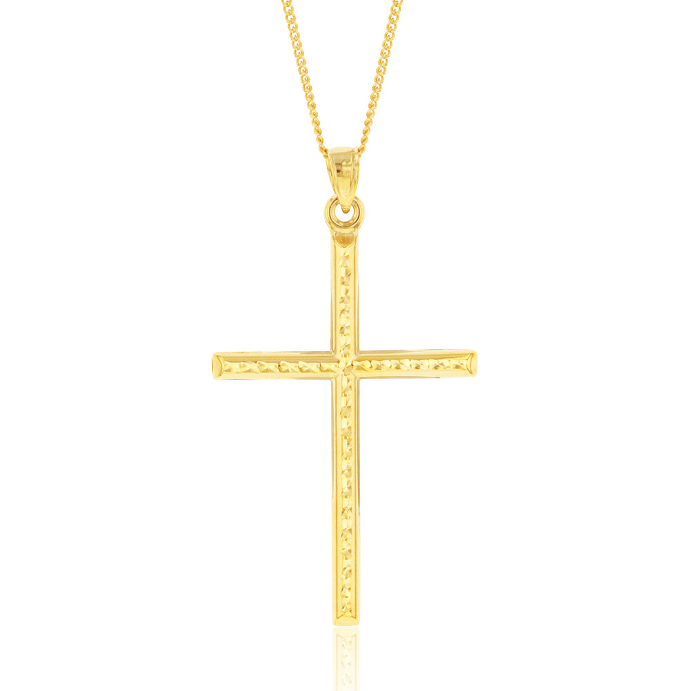 9ct Yellow Gold Silverfilled Diamond Cut Cross