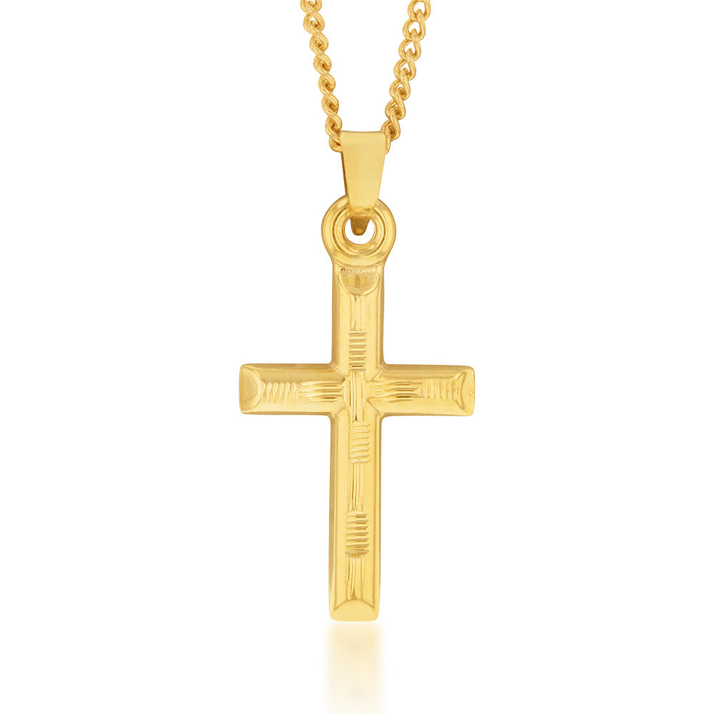 9ct Yellow Gold Silverfilled Diamond Cut Cross Pendant