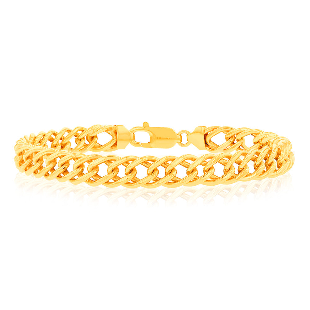 9ct Yellow Gold Silverfilled Double Curb 21cm Bracelet