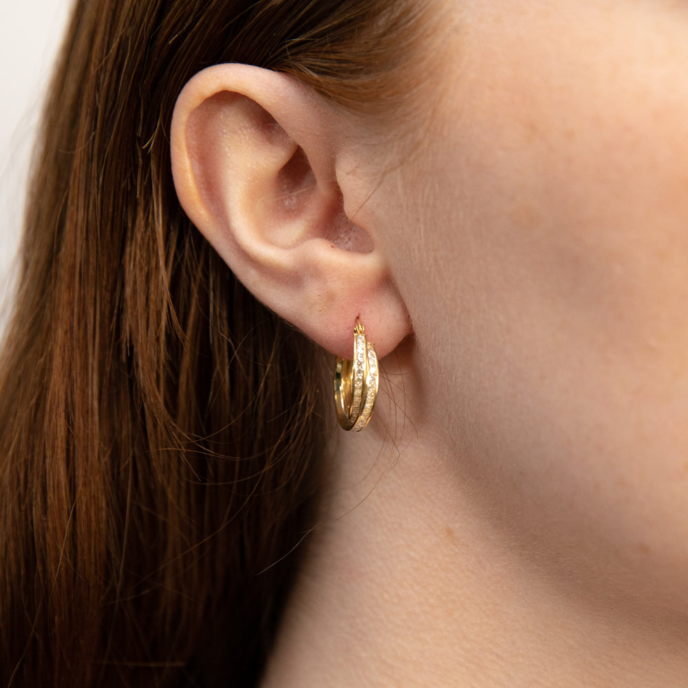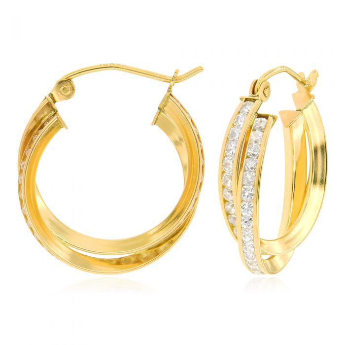 9ct Yellow Gold Silverfilled Double Twisted Hoop Zirconia Earrings