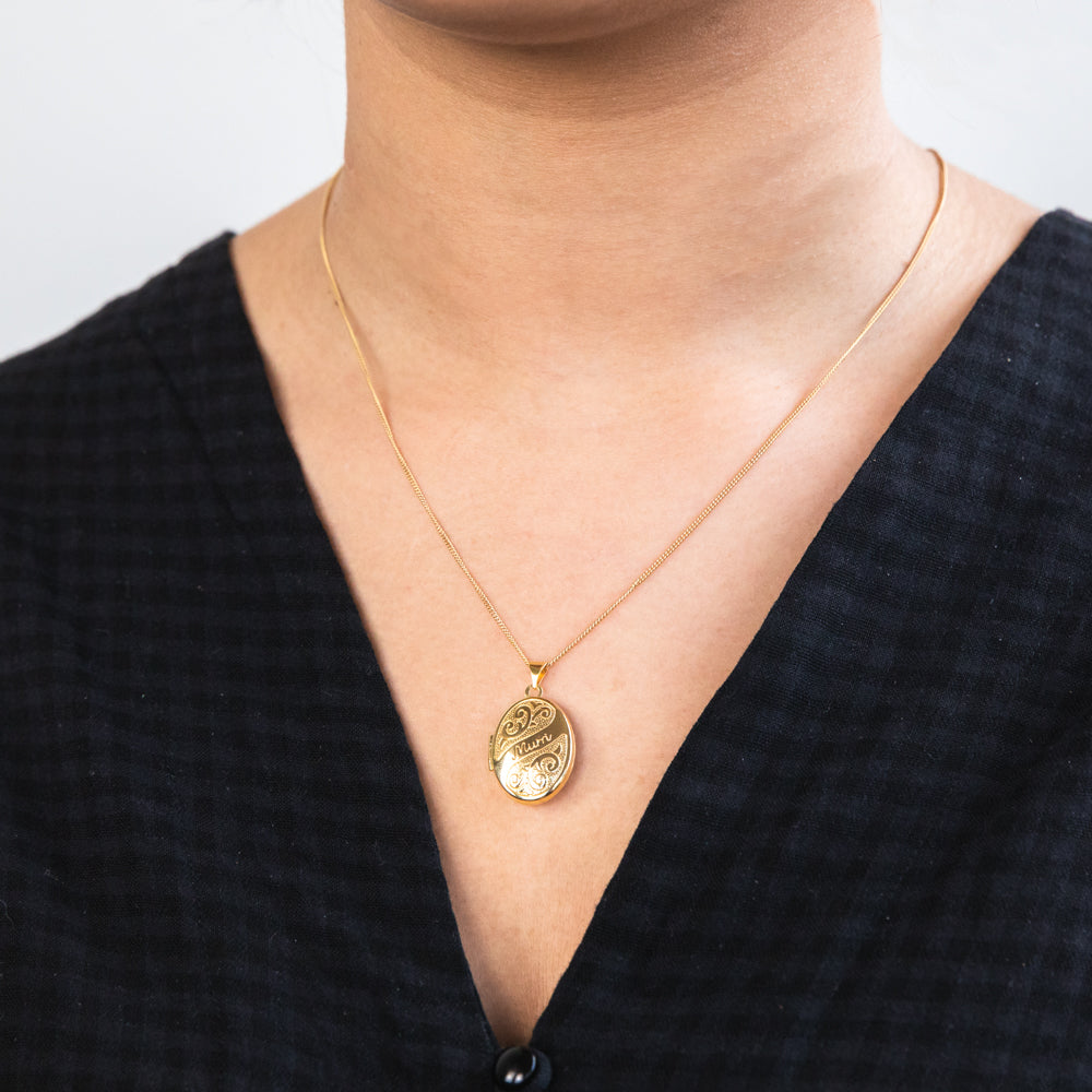• The pendant is engraved with the word “Mum”.