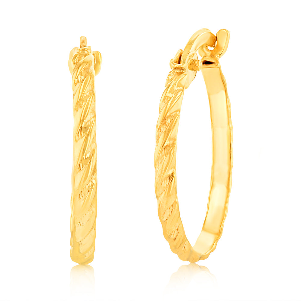 9ct Yellow Gold Silverfilled Fancy Patterned Hoop Earring