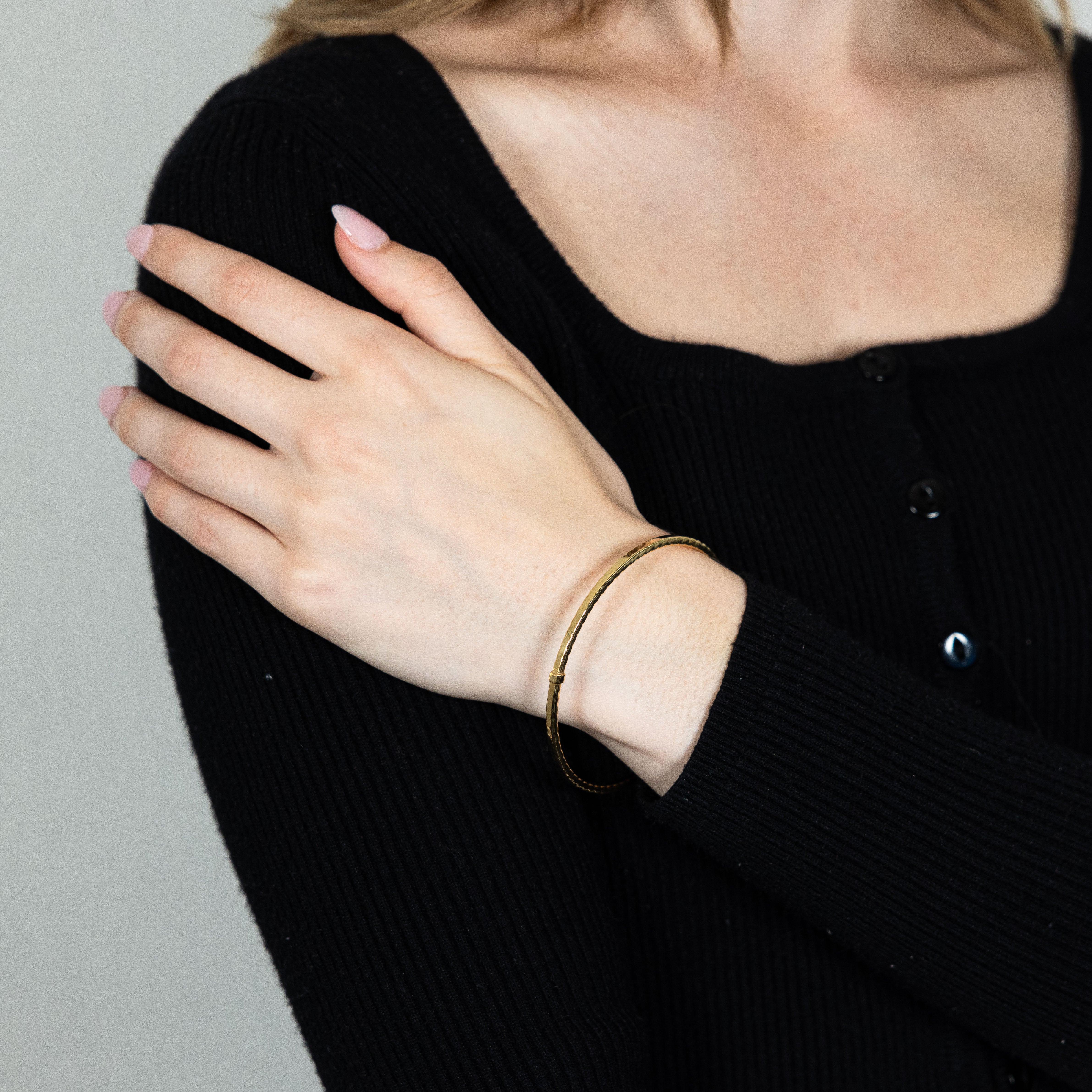 9ct Yellow Gold Silverfilled Fancy Straight Edge Textured Bangle