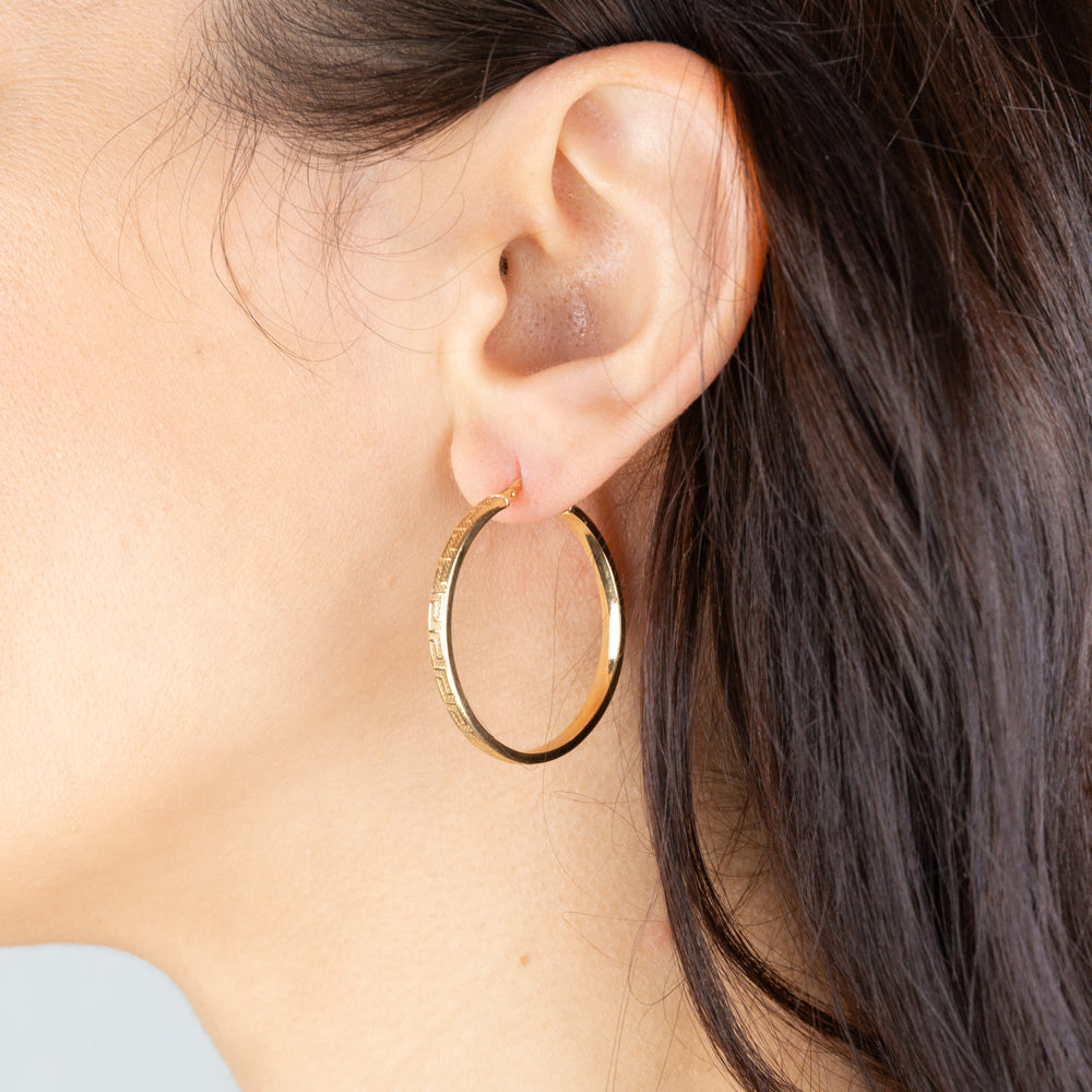9ct Yellow Gold Silverfilled Greek Key Hoop Earrings