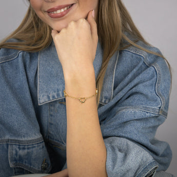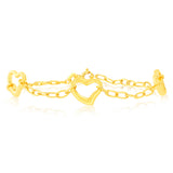 9ct Yellow Gold Silverfilled Heart Charm Fancy 18cm Bracelet
