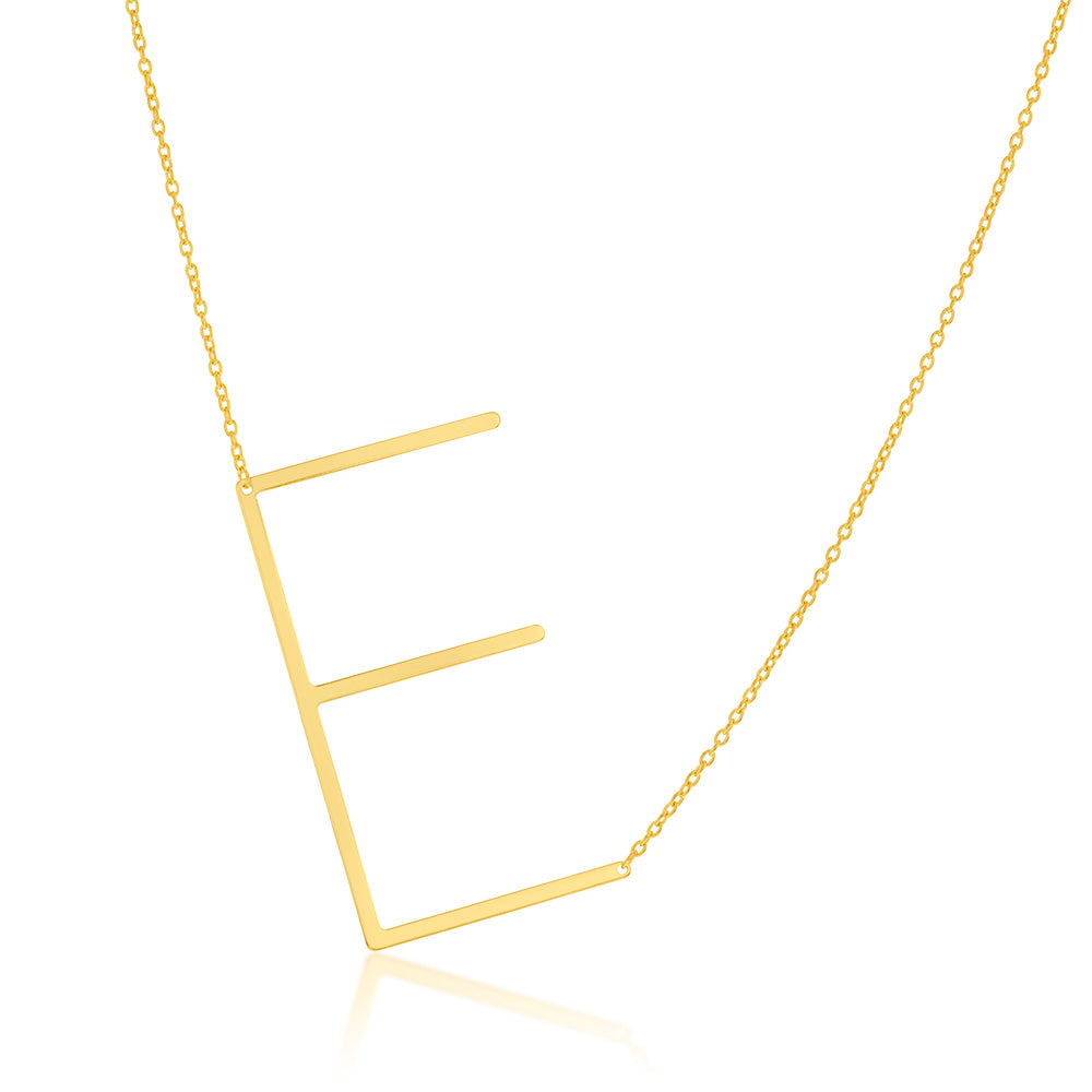 9ct Yellow Gold Silverfilled Initial "E" Pendant on 42+3cm Chain