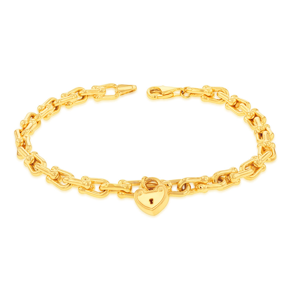 9ct Yellow Gold Silverfilled Lock On 19cm Bracelet
