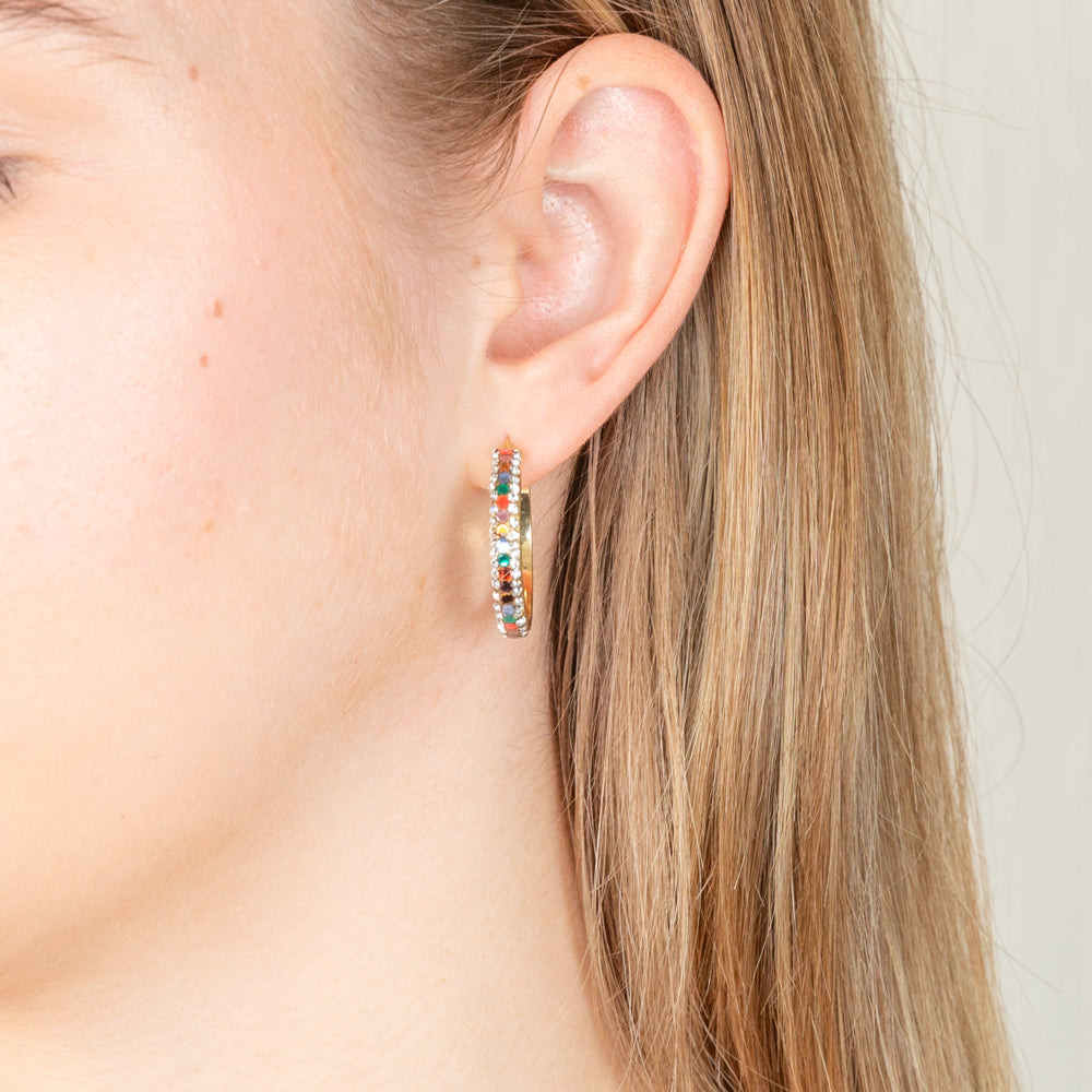 9ct Yellow Gold Silverfilled Multicolour And White Crystal 20mm Broad Hoop Earrings