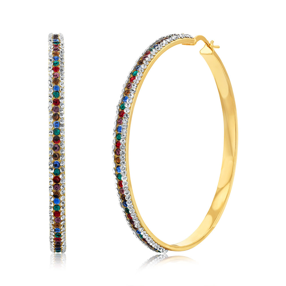 9ct Yellow Gold Silverfilled Multicolour And White Crystal 50mm Broad Hoop Earrings