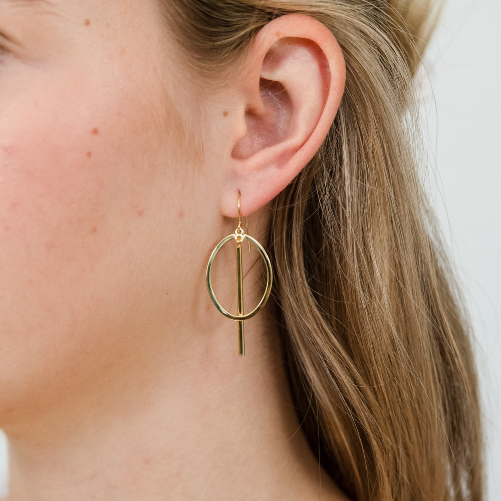 9ct Yellow Gold Silverfilled Open Circle & Bar Drop Earrings.