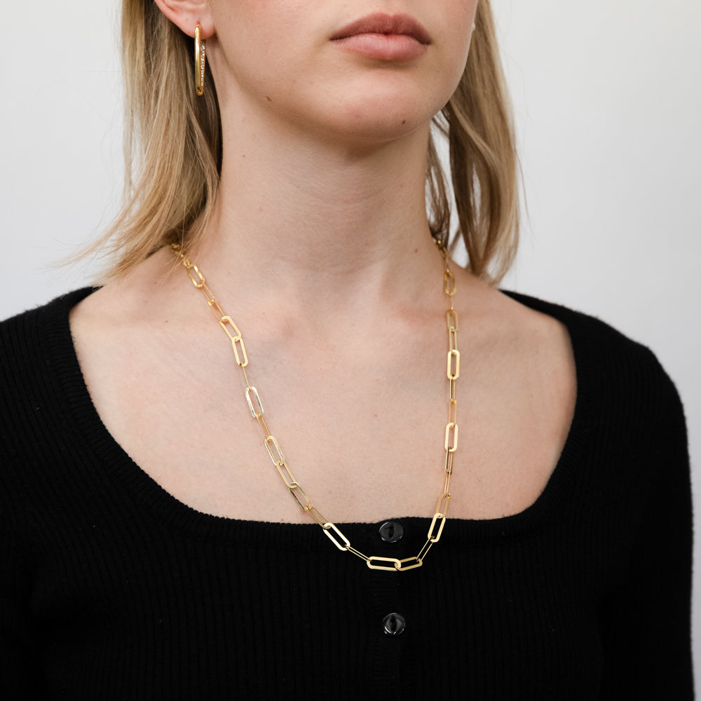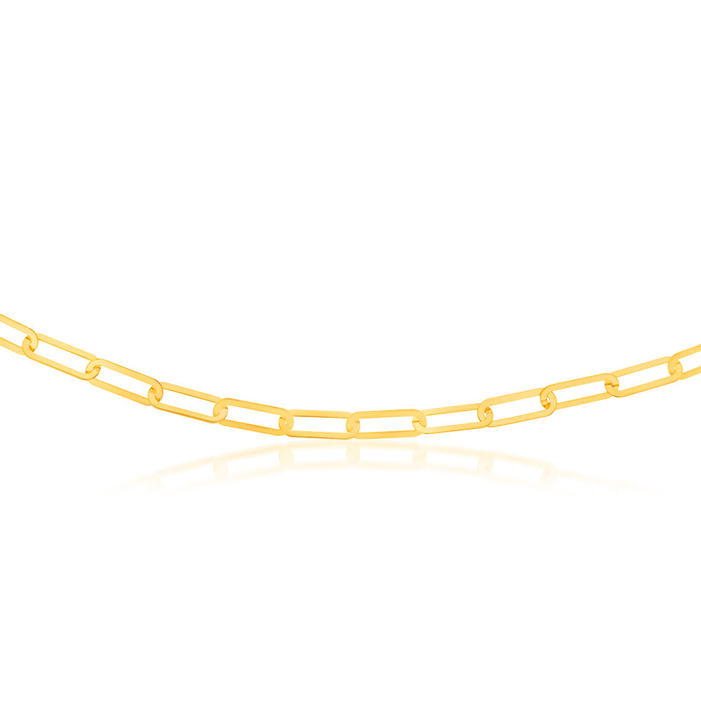 This stunning 9ct Yellow Gold Silverfilled Paperclip 60cm Chain is perfect for all day wear. Paperclip chains are especially trendy right now because of their unique, elongated chain links. Crafted in the warm tones of yellow gold with a shiny lustre and smooth highlights, this necklace is anything but boring. You can wear it on its own or pair it with other chains for a curated look.