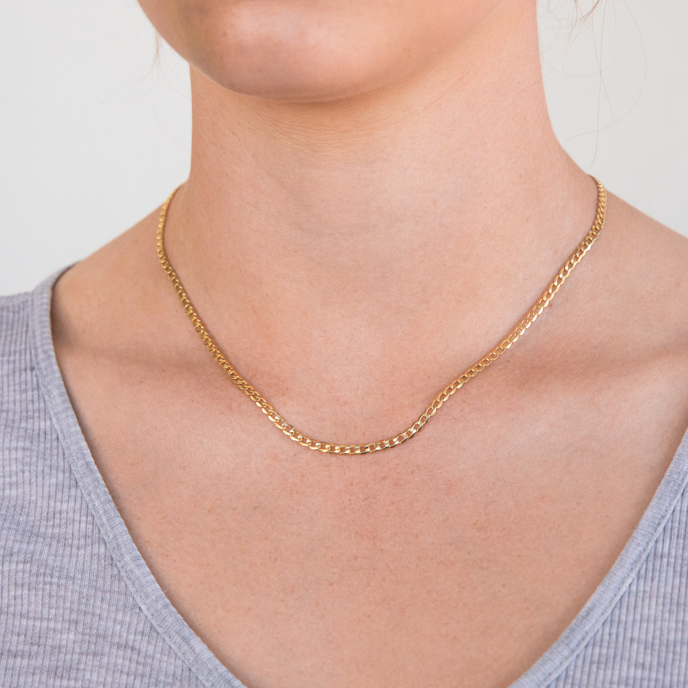 9ct Yellow Gold Silverfilled Super Flat Curb 80 Gauge 45cm Chain